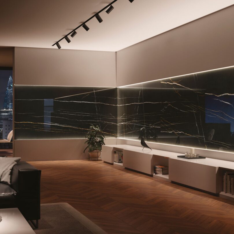 Inoltre, i pannelli decorativi sono disponibili anche in versione retroilluminata, grazie alle finiture Dècora LED e Dècora Glass Backlit. La luce a LED uniforme, sia bianca che RGB, esalta al massimo i dettagli di ogni soggetto grafico, creando un effetto estremamente scenografico.