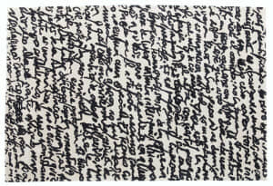 Nel 1991 Joaquim Ruiz Millet iniziò a scrivere un romanzo che terminò 10 anni più tardi. Durante questo periodo di gestazione una pagina di questo manoscritto non ancora pubblicato diede vita ad una serie di oggetti, come questo tappeto, con questi caratteri allungati e fini che tramutano il lavoro dalle mani verso i piedi.