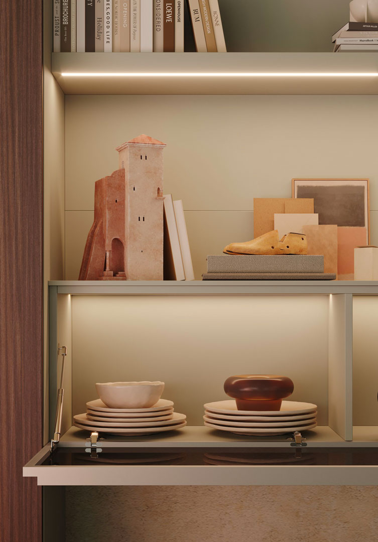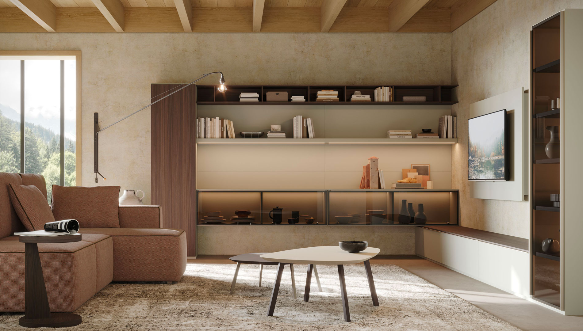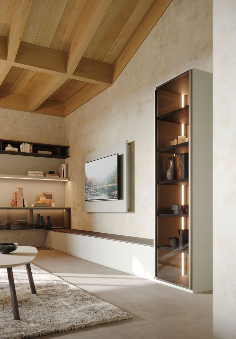 Pareti attrezzate per progettare un soggiorno componibile.
