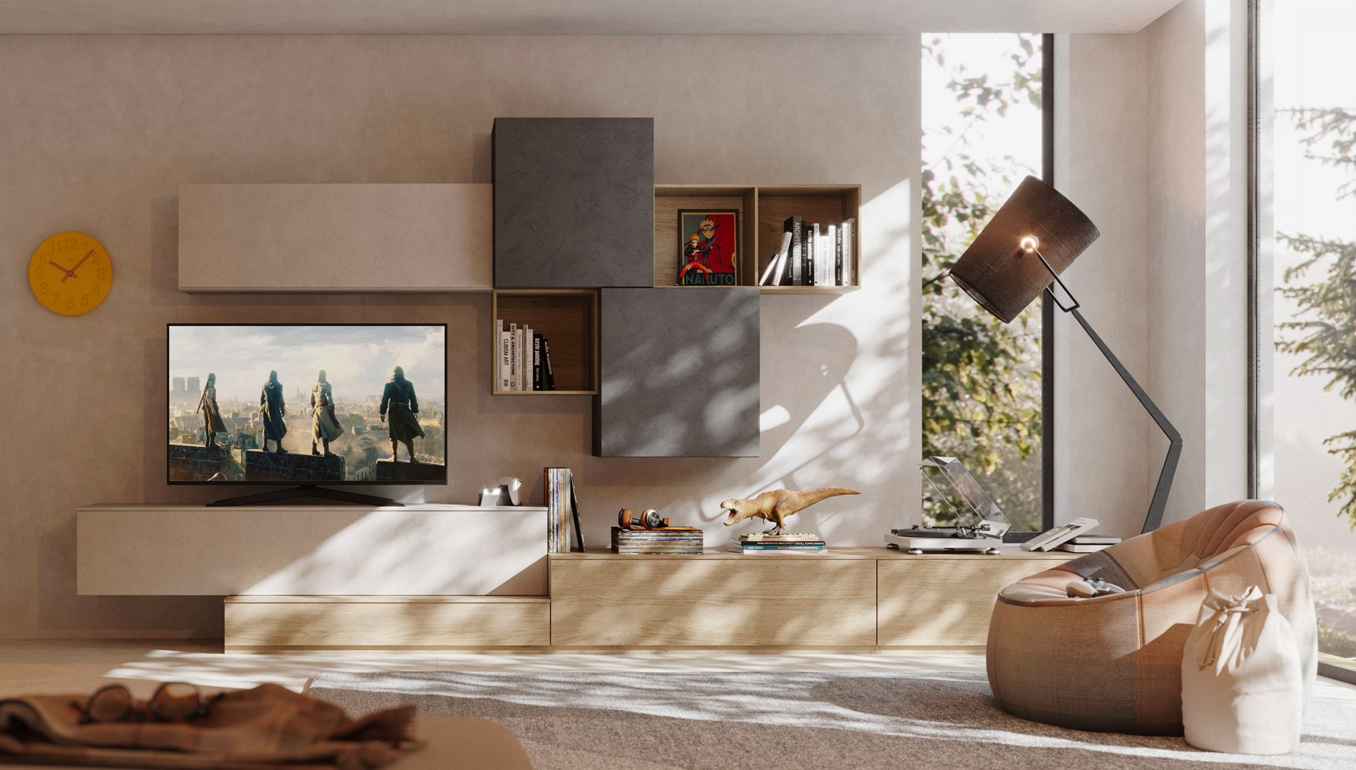 Pareti attrezzate per progettare un soggiorno componibile.