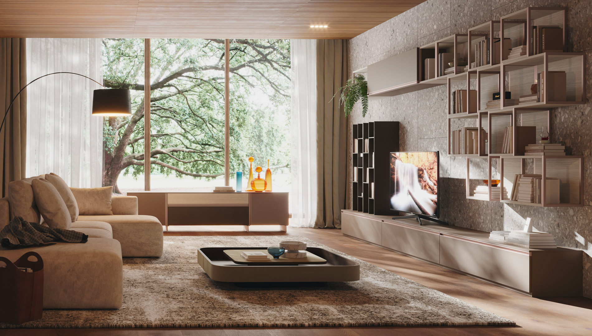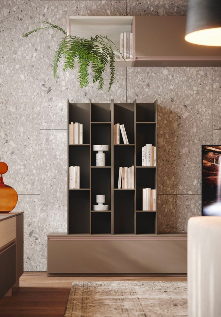 Pareti attrezzate per progettare un soggiorno componibile.