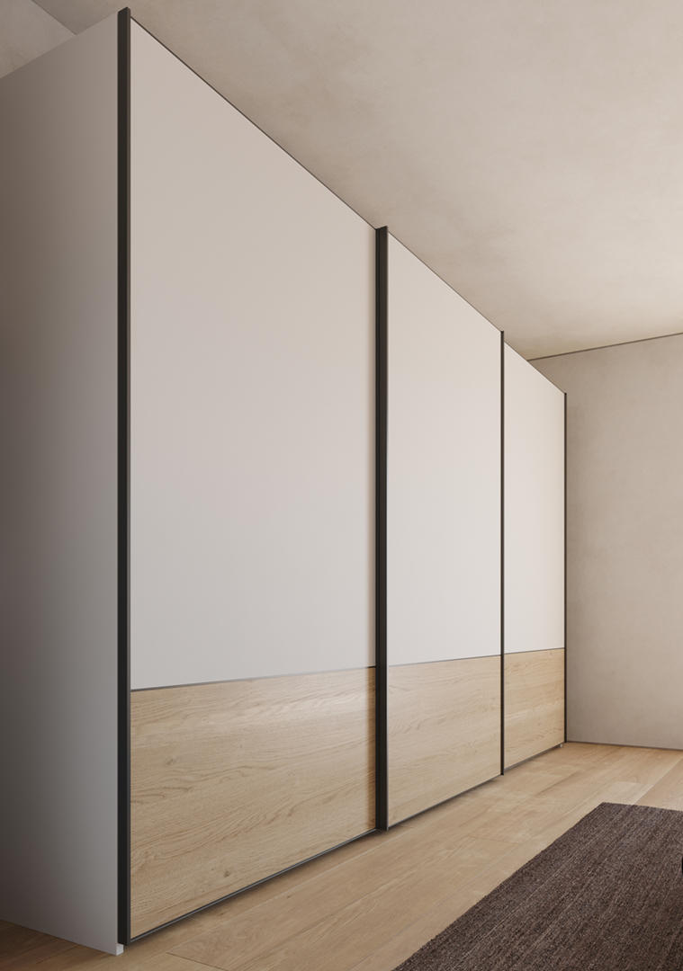 Armadio con anta spezzata bicolore, capiente e funzionale.