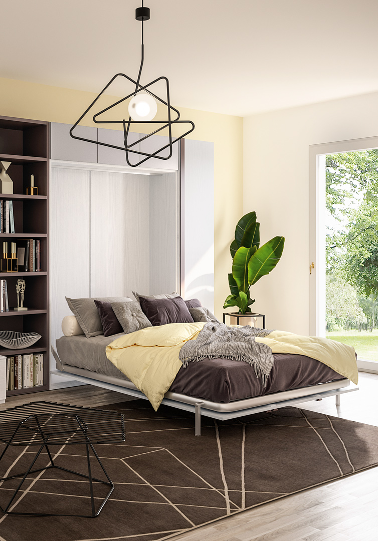 Armadio battente con letto trasformabile e libreria: L. 252,8, H. 227,2, P. 42