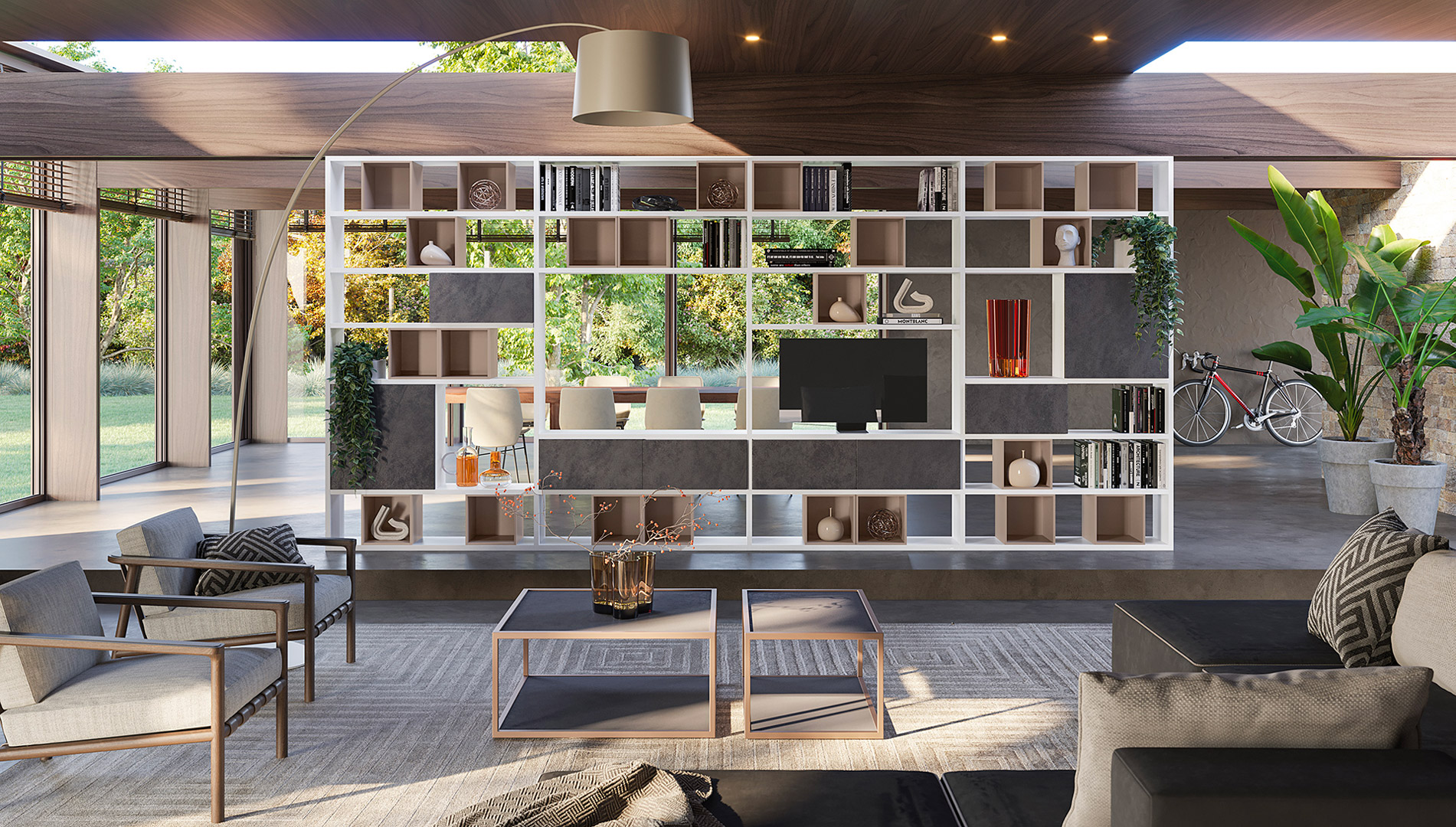 Vasta collezione di librerie moderne per arredare con stile il soggiorno.