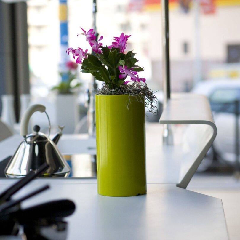 Vaso Cilindro Alto Nano di Vondom. Fioriera cilindrica alta in formato compatto. Polietilene resistente agli agenti atmosferici, ideale per piccoli spazi esterni.