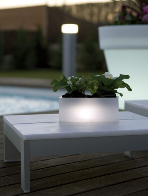 Fioriera Jardinera Nano di Vondom. Fioriera rettangolare allungata in formato compatto, ideale per davanzali e balconi. Polietilene resistente.