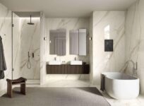Base e Scatola in acciaio inox regolabile in profondità per adattarsi alle diverse esigenze di spessore del rivestimento Geopietra. Montata a parete, con collante Geocoll, prima del rivestimento, senza bisogno di incassi.