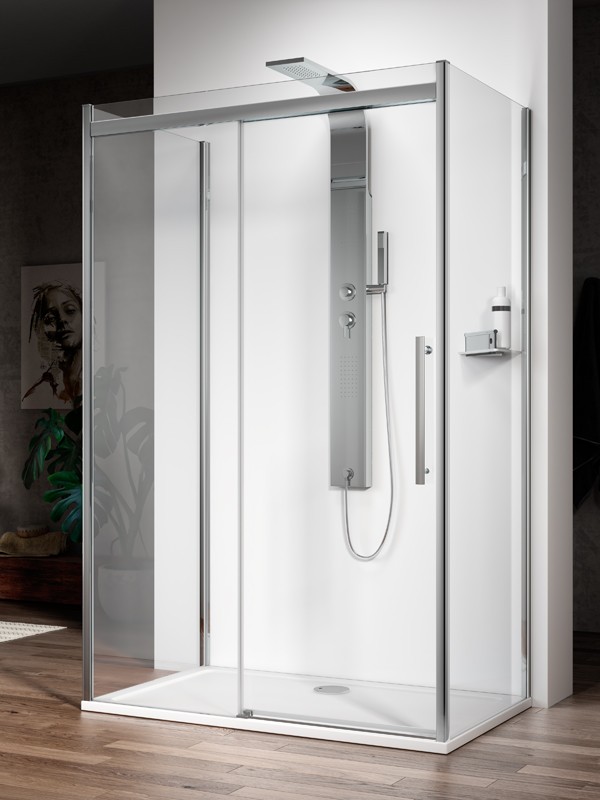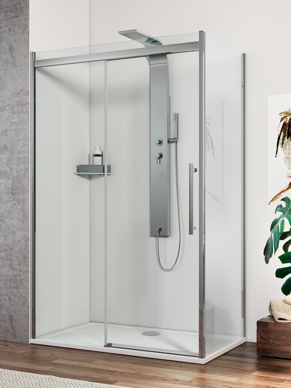 | Caratteristiche | A nicchia (lato lungo) o angolare (lato fisso e lato lungo). ISCHIA EVO – SISTEMA MODULARE AD ANTA SCORREVOLE A CHIUSURA RALLENTATA |