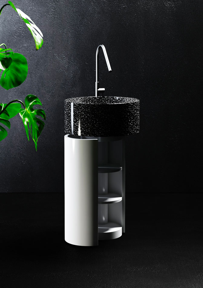 Lavabo freestanding con mobiletto cilindrico