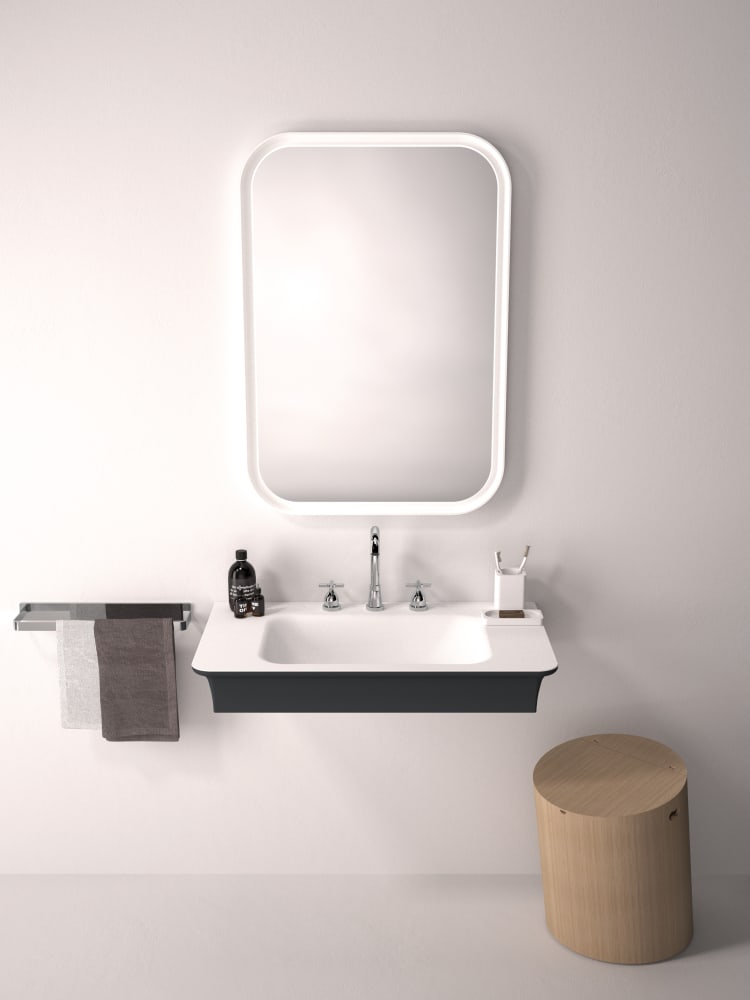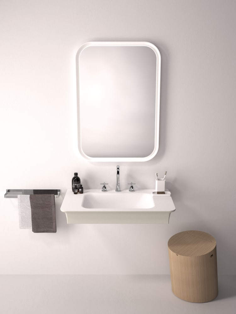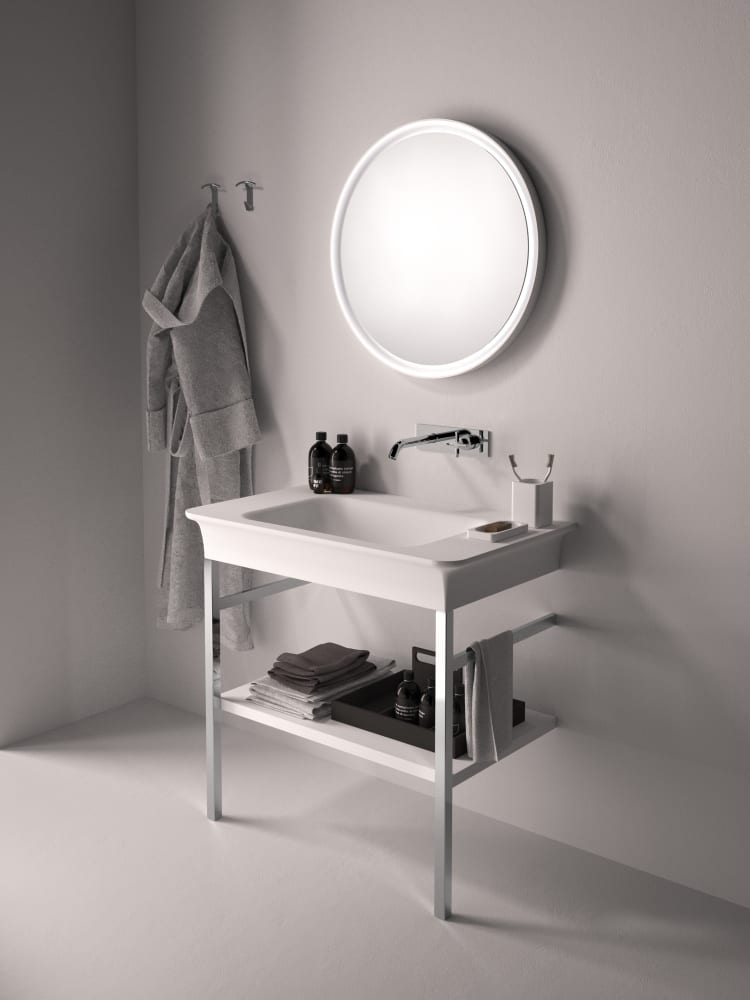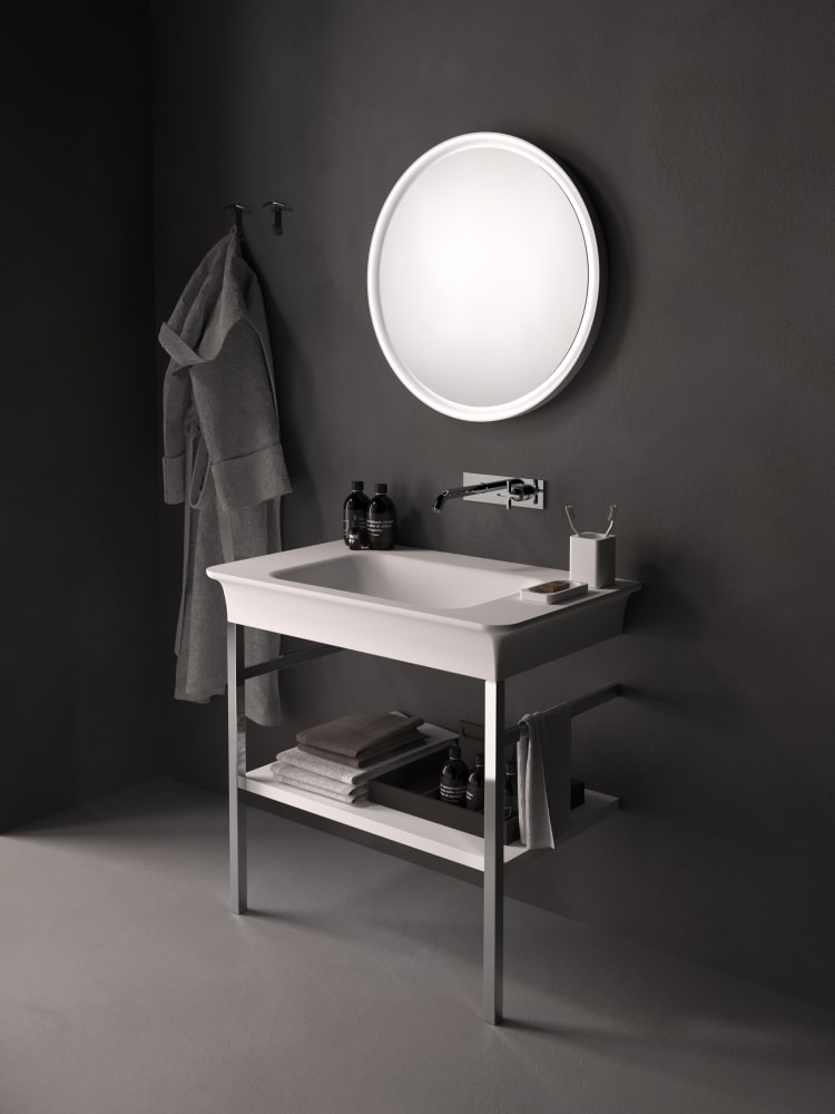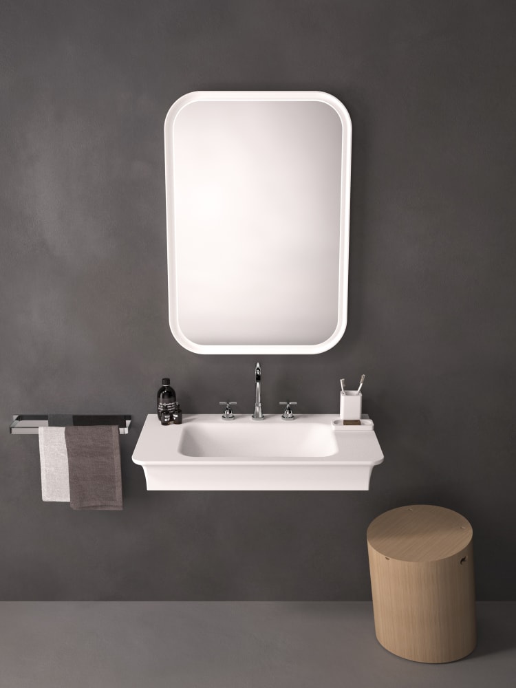 Novecento XL interpreta in chiave moderna le linee del passato, trasportandole in una dimensione nuova, importante e accogliente. Ai lati di questo lavabo dalle forme sinuose, sono presenti due ampie superfici di appoggio. È proposto in Ceramilux® bianco, lucido o opaco, oppure bicolore nelle varianti bianco e grigio chiaro o bianco e grigio scuro. Disponibile in versione da parete, oppure con struttura in acciaio inox naturale o laccato in bianco, grigio chiaro, grigio scuro o brunito spazzolato.