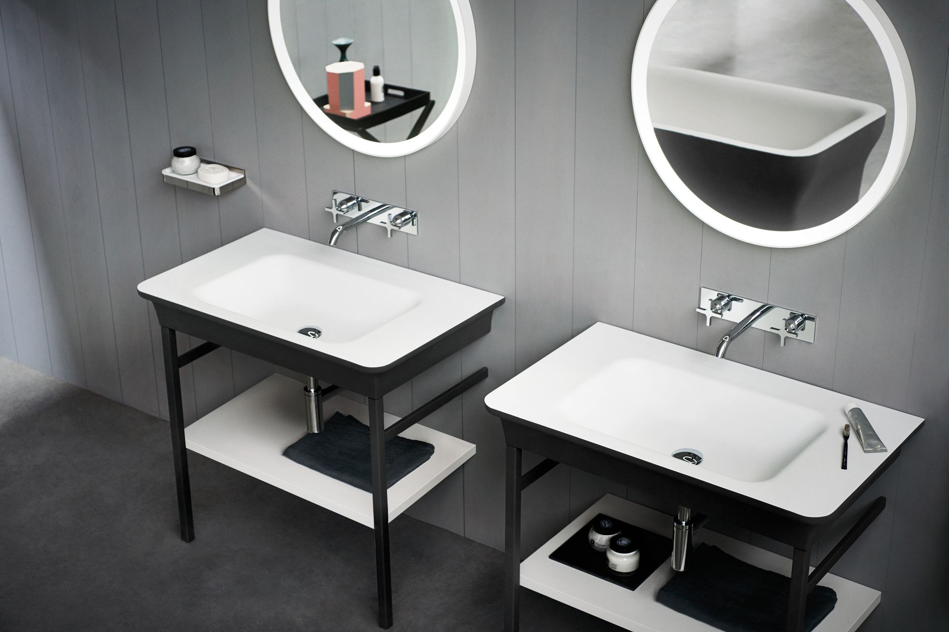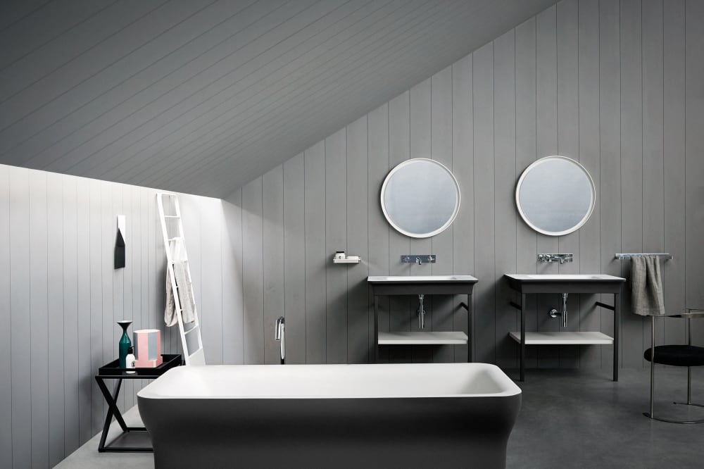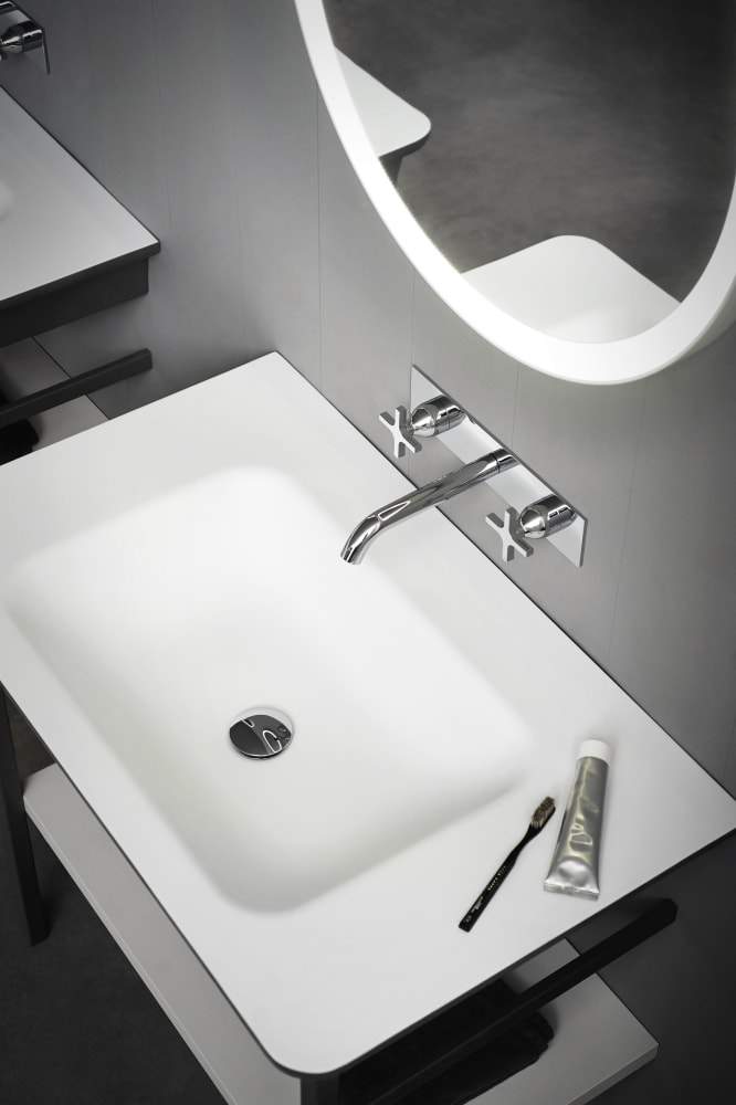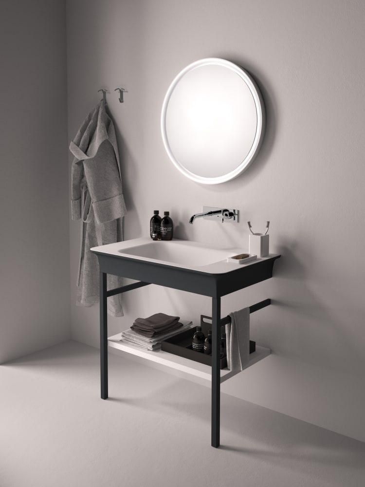 Novecento XL interpreta in chiave moderna le linee del passato, trasportandole in una dimensione nuova, importante e accogliente. Ai lati di questo lavabo dalle forme sinuose, sono presenti due ampie superfici di appoggio. È proposto in Ceramilux® bianco, lucido o opaco, oppure bicolore nelle varianti bianco e grigio chiaro o bianco e grigio scuro. Disponibile in versione da parete, oppure con struttura in acciaio inox naturale o laccato in bianco, grigio chiaro, grigio scuro o brunito spazzolato.