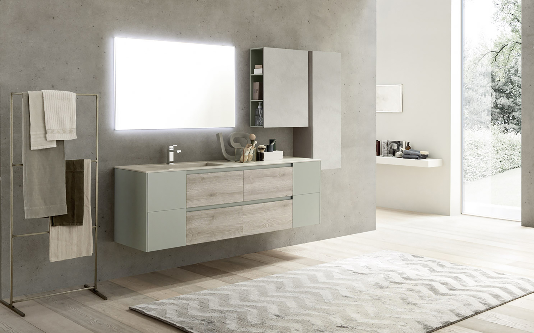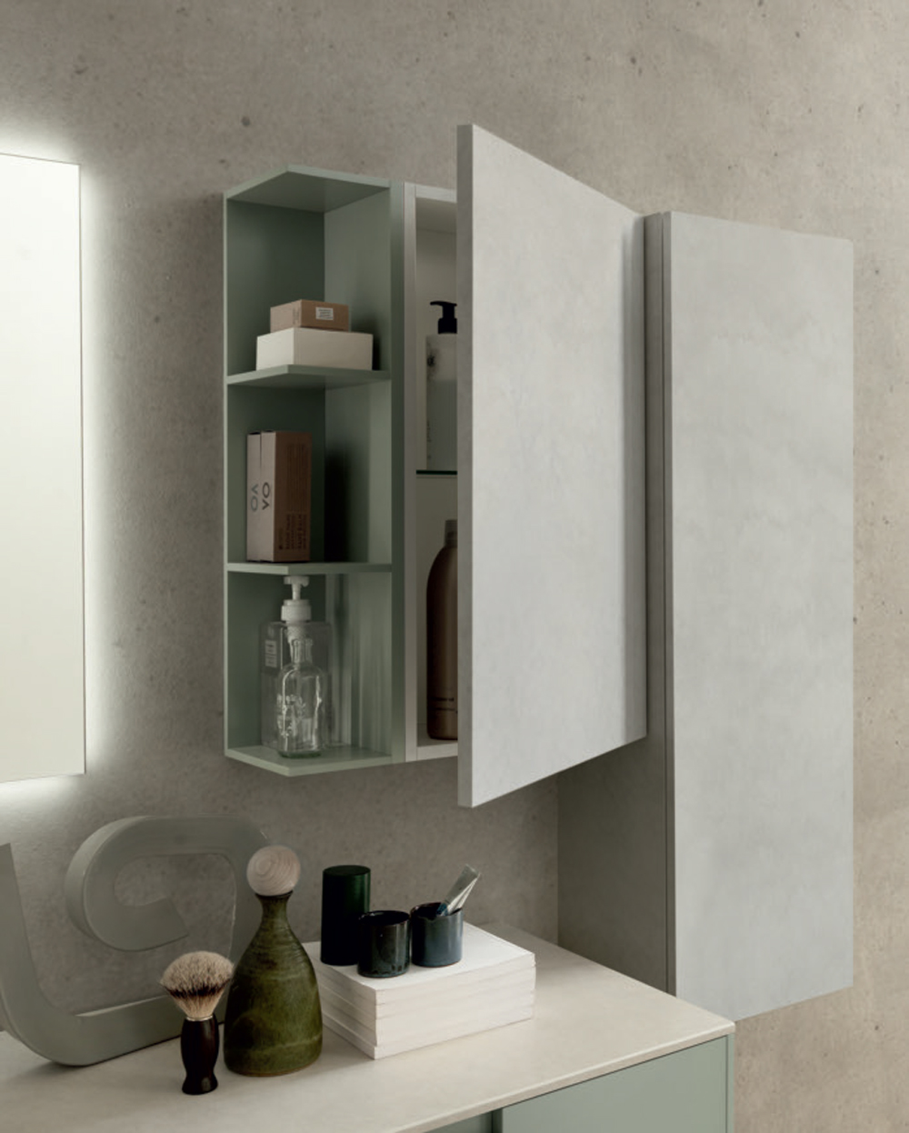 Con Lime 2.0 Azzurra rende omaggio a Vico Magistretti, maestro del design italiano e ideatore dell’apertura a gola. Ante e cassetti dei mobili bagno sono liberati dalla necessità di una maniglia, facendosi puro volume, texture, materia. Un design contemporaneo, caratterizzato da finiture, materiali e strutture trasversali per arredare la stanza da bagno con un tocco sempre personale. La posizione della gola nell’anta è studiata per poter creare infinite combinazioni con le atre variabili estetiche e strutturali. L’ampia proposta di pensili, lavabi, top, specchiere e altri complementi moltiplica poi le possibilità. Il risultato è uno spazio su misura, unico in ogni progetto.
