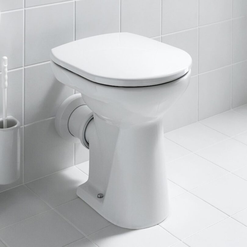 Vaso a pavimento ‘comfort’, a fondo piatto, con brida, scarico orizzontale, altezza di seduta 450 mm.