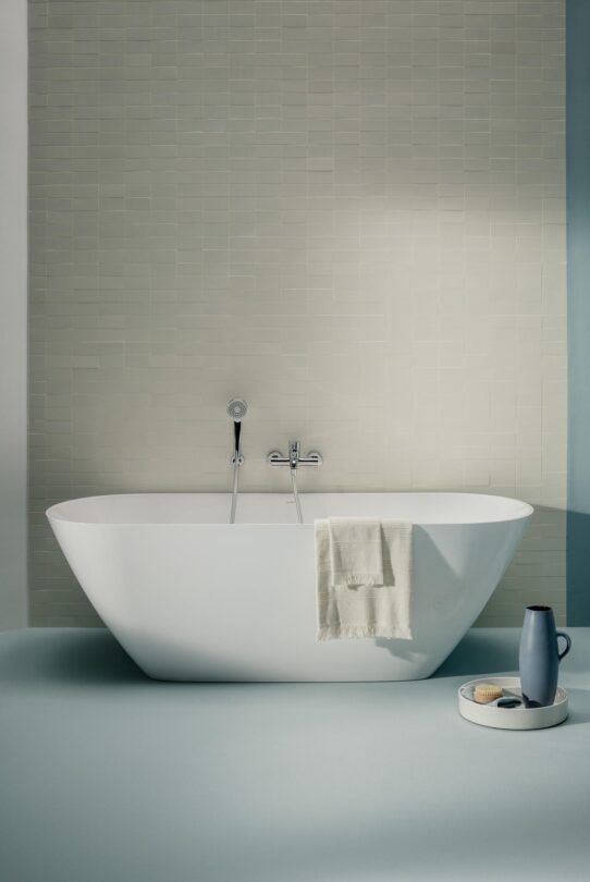 – Vasca da bagno, aggancio a parete, in materiale composito Marbond: 1700 x 850 x 540 mm (lunghezza, larghezza, altezza).