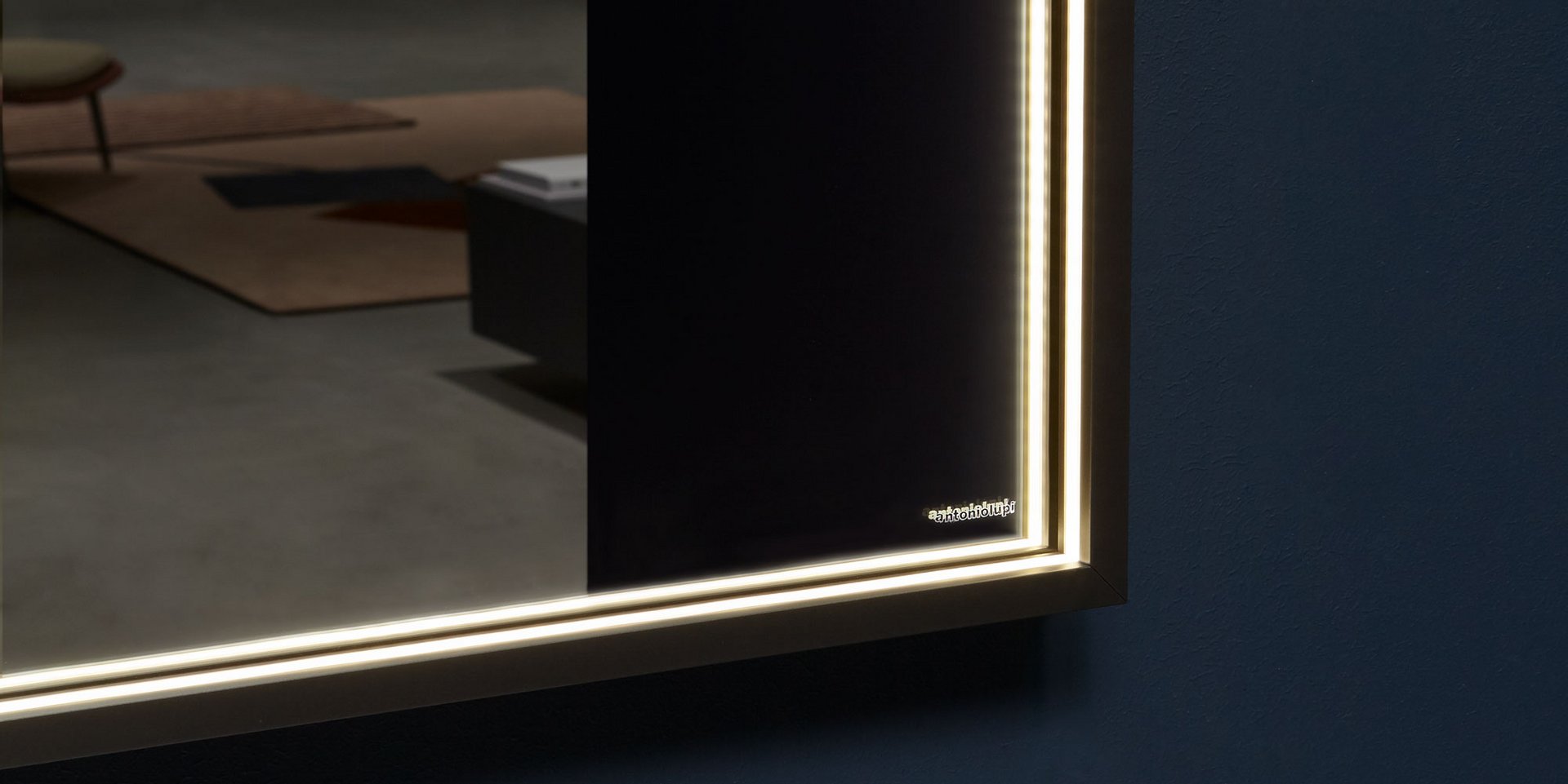 Like a painting, a work of art, a rigorous sign that comes from perfect geometry and contains one or more moving images. A precise perimeter but at the same time capable of arousing emotion and surprise. The bronze finish aluminum frame, which characterizes the Edison mirror, is elegant and refined. The light integrated into the frame is the absolute protagonist of this system and defines one of the most important areas of the bathroom giving it refinement and charm. Edison is available in different sizes and when lit it gives a magical aura to the entire environment.