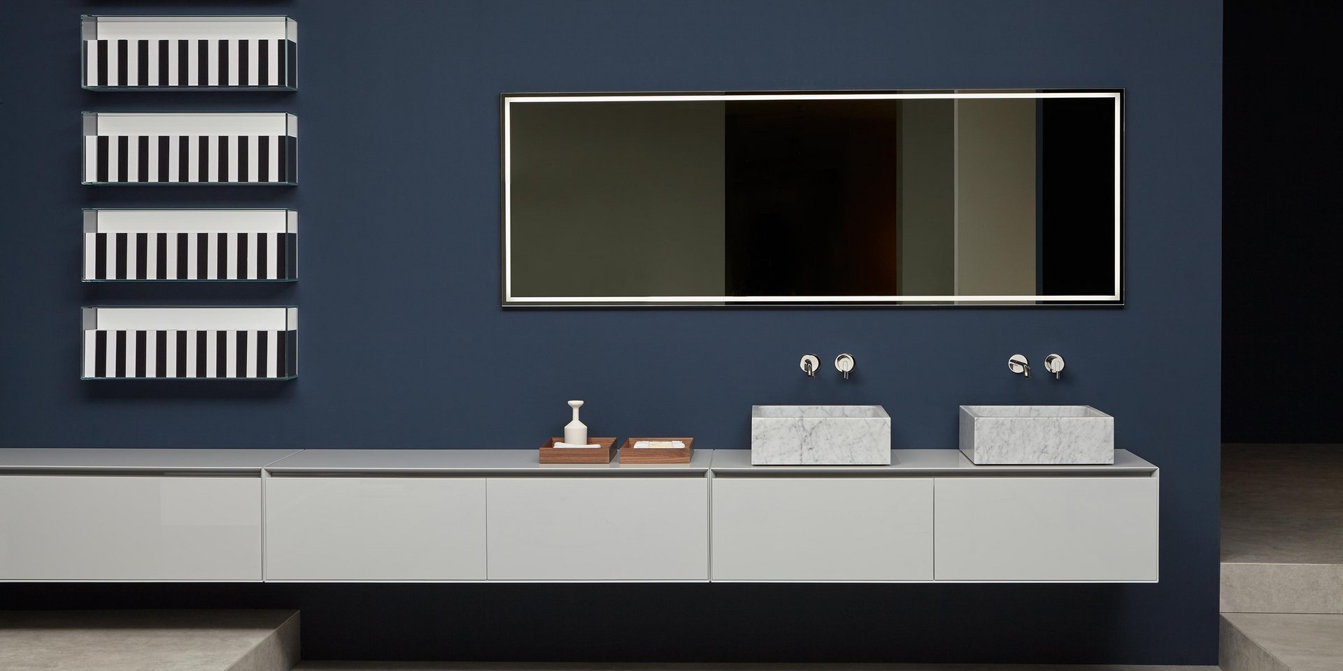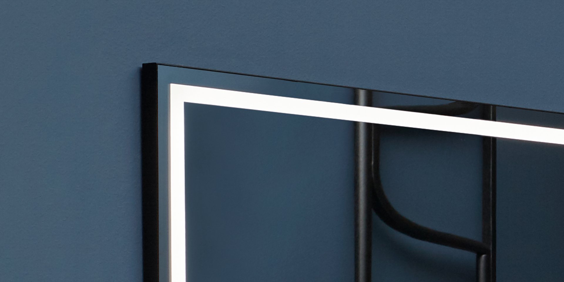Una doppia cornice, una specchiante e una luminosa, a evidenziare il perimetro della superficie, a sottolineare l’importanza delle immagini che vi si riflettono. Fila è una specchiera con vetro spessore 4 mm e fascia perimetrale sabbiata di 1,5 cm con illuminazione a led. È sostenuta da un telaio portante in alluminio nero che conferisce eleganza all’insieme.