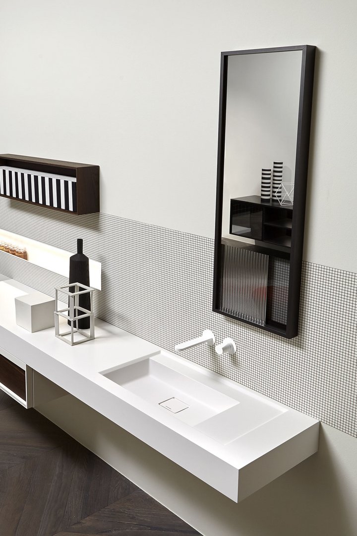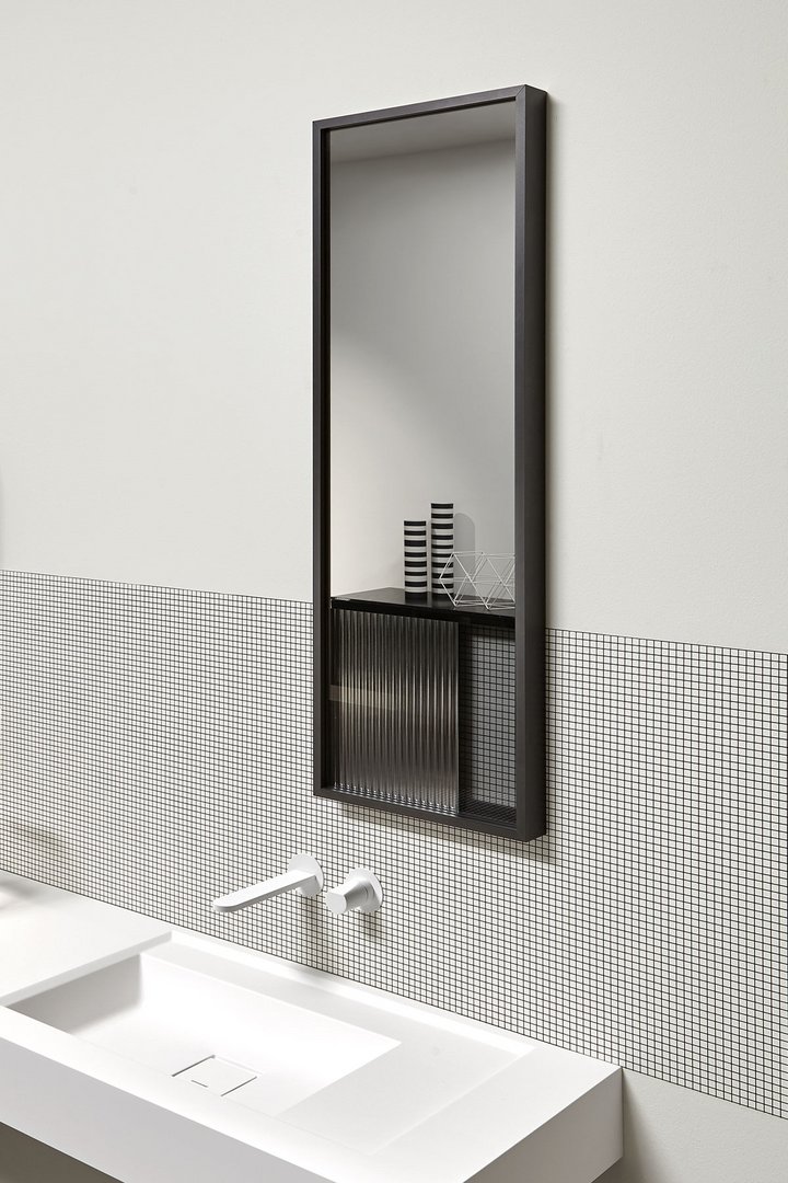 Una sequenza di layer vetrati grazie ai quali generare dissonanze, prospettive, riflessi e visioni inedite, un progetto che arricchisce la superfice riflettente per dare vita a elementi in grado di dialogare con lo spazio e con la luce. Il vetro, da sempre materiale d’elezione di antoniolupi rivela così tutta la propria potenzialità espressiva, grazie alla perfezione delle lavorazioni superficiali a cui è sottoposto.