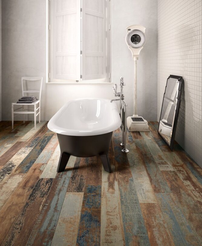 Con COLORART, la “falegnameria” di Ceramica Sant’Agostino diventa sempre più artistica, arricchendosi con quest’ultima interpretazione fortemente creativa del pavimento effetto legno in gres porcellanato, concepita nel solco del successo delle precedenti BLENDART e PICTART.