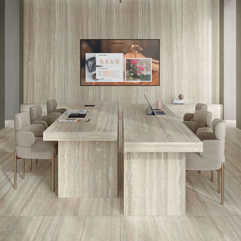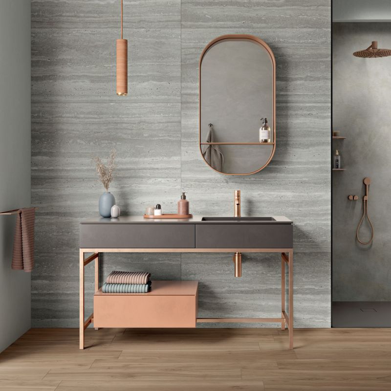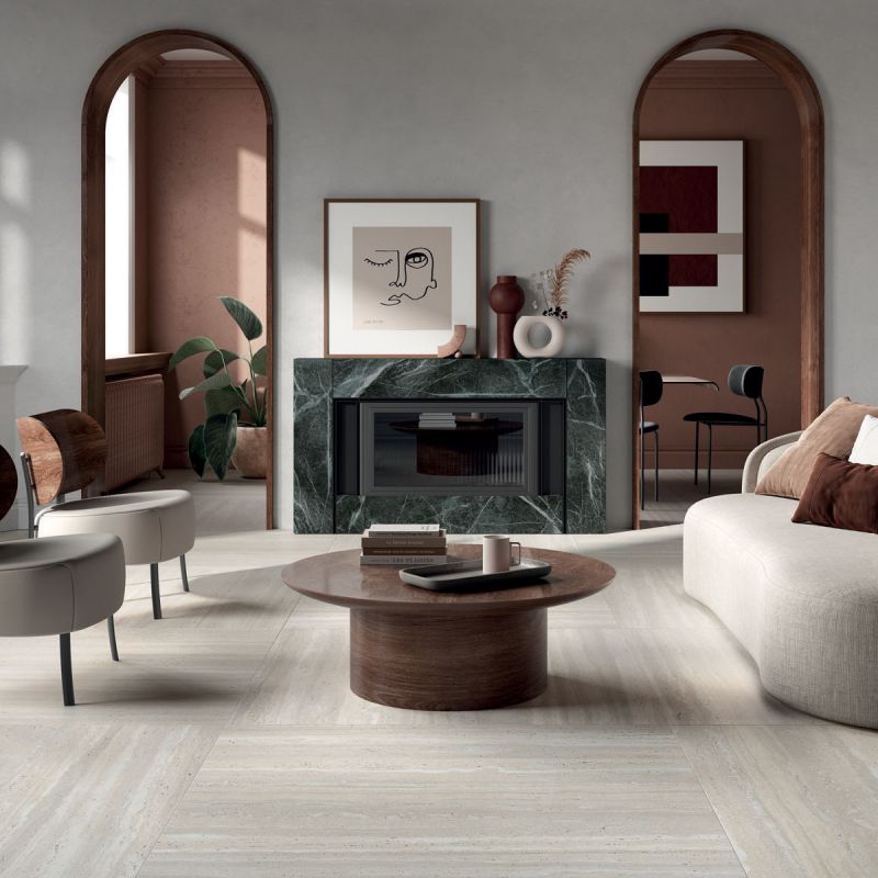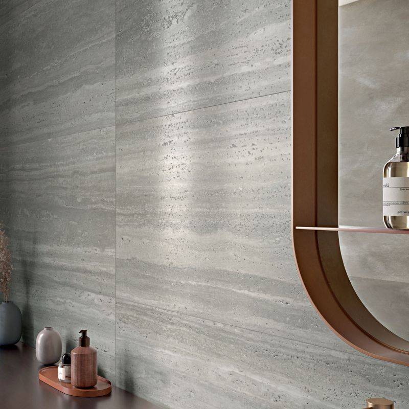 Dorica rinnova l’estetica del marmo travertino con superfici che si distinguono per un realismo dall’effetto quasi tridimensionale. Il progetto gioca con molteplici formati e alterna differenti finiture, studiate sia per le esigenze degli spazi indoor che per gli ambienti esterni. A tutto ciò si aggiunge una sorprendente finitura ad effetto anticato, che richiama l’aspetto lucidato e vissuto tipico di certi monumenti della tradizione italiana.
