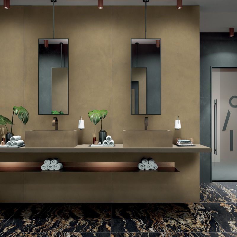 Luce è la superficie ceramica che sorprende per stile e personalità. Uno studio sulla materia che parte dall’espressività della resina e si sviluppa in una palette cromatica di tendenza, nella quale i toni neutri incontrano inaspettate suggestioni provenienti dal mondo dei metalli.