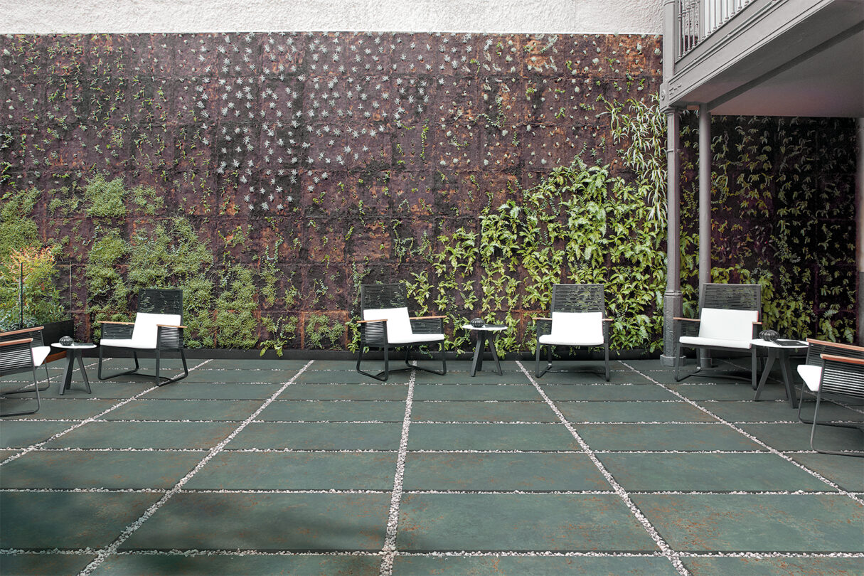 Una collezione segnata dal tempo dove corrosione ed ossidazione entrano in scena donando alle lastre metalliche una personalità sempre varia ed originale. Metal si declina nei colori Pearl, Iron, Corten, Oxide, Titanium, in tre spessori e nei formati 120×280, 120×120, 60×120 cm. Grazie anche alla finitura R11 per outdoor Metal crea continuità cromatica con ambienti indoor.