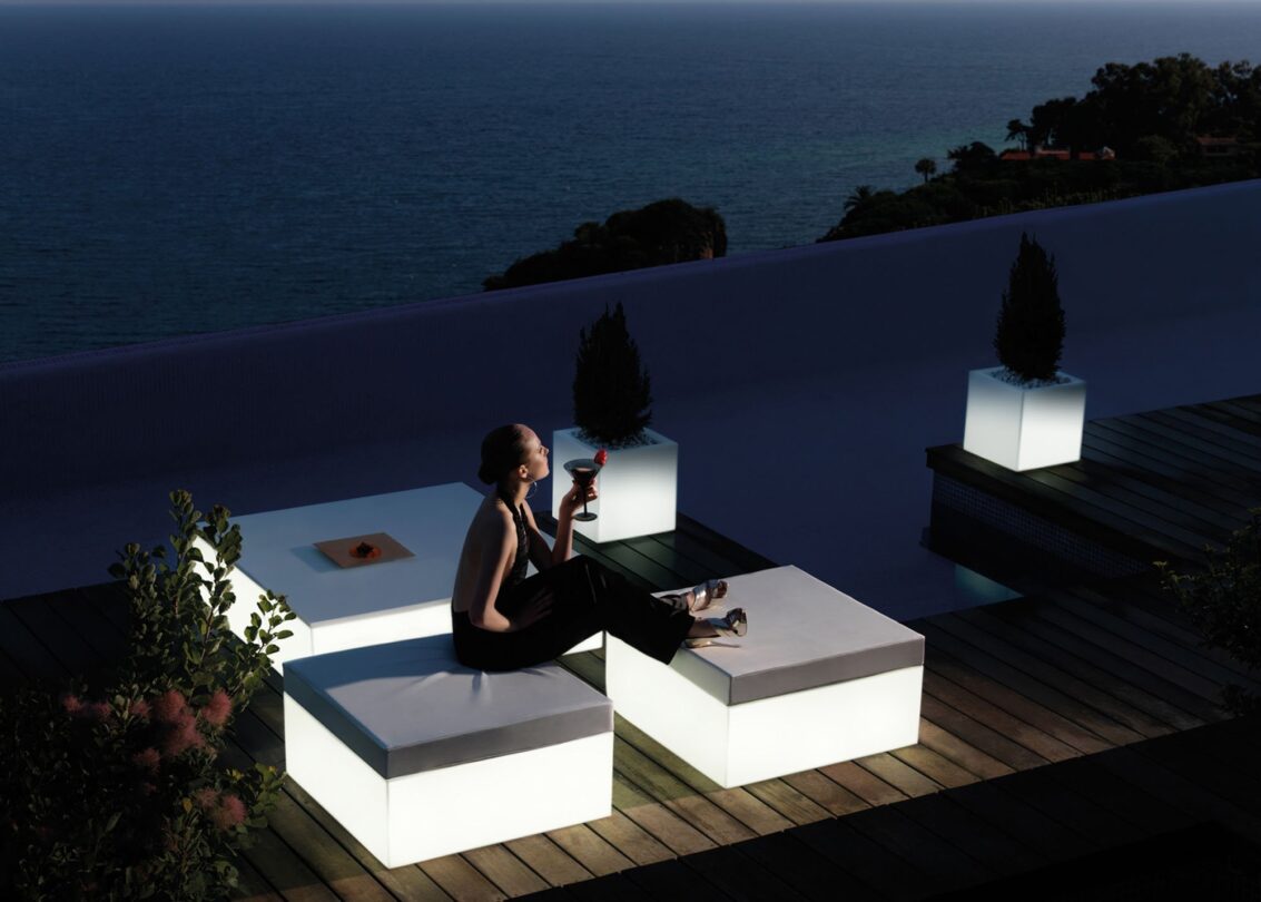 Pouf da esterno Quadrat Ottoman di Vondom. Seduta aggiuntiva dalle forme geometriche squadrate, coordinata con la collezione Quadrat. Polietilene per uso indoor e outdoor.