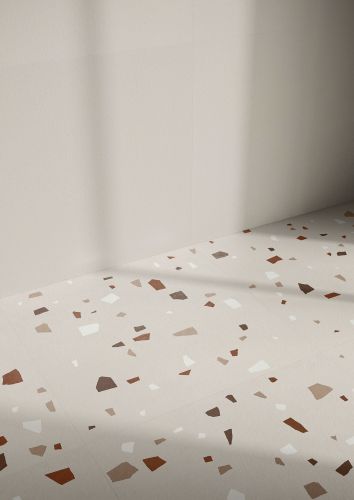 I colori naturali, che rispondono ai nuovi canoni estetici dell’interior design, si arricchiscono di frammenti policromi, delicatamente riflettenti e pienamente integrati nella materia.