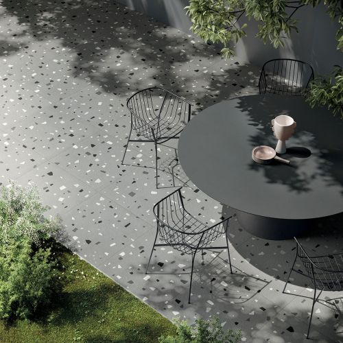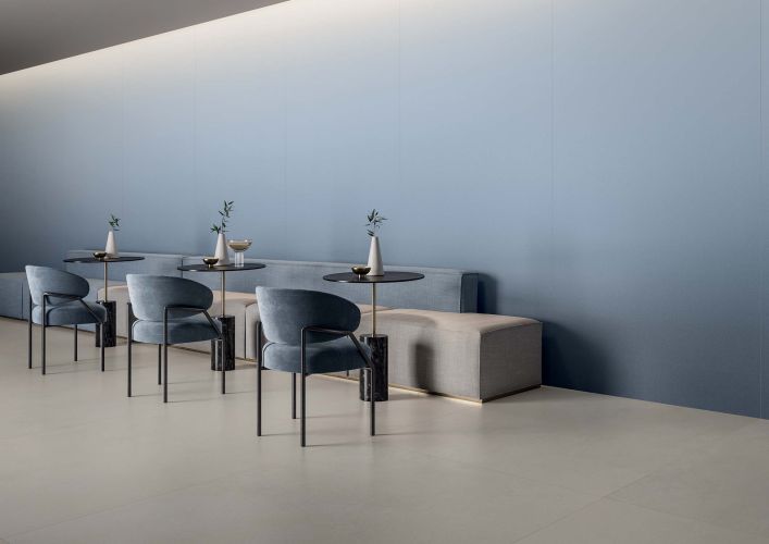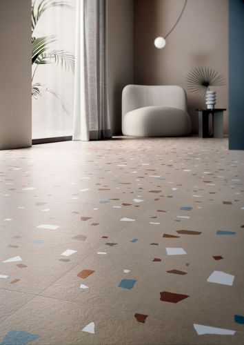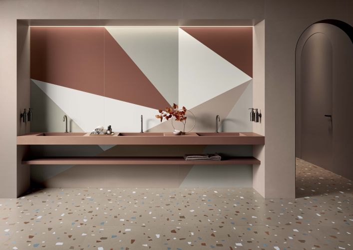 I colori naturali, che rispondono ai nuovi canoni estetici dell’interior design, si arricchiscono di frammenti policromi, delicatamente riflettenti e pienamente integrati nella materia.