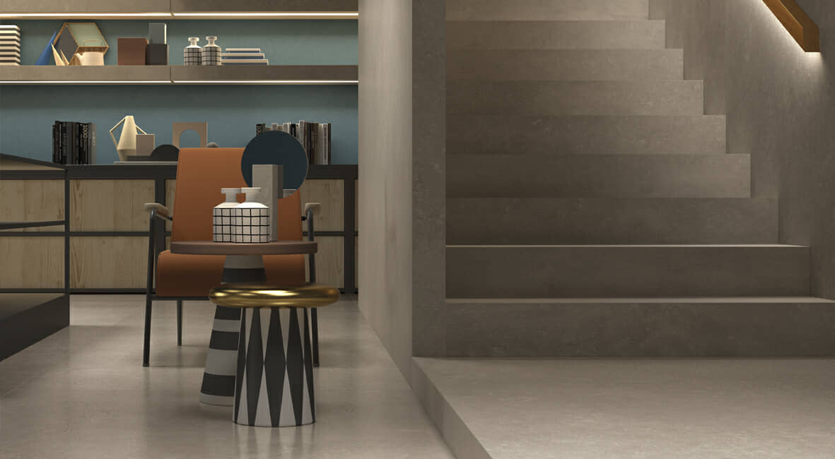 Le lastre donano continuità a pavimento e rivestimento riducendo le fughe.