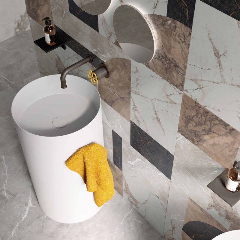 Epoque è la collezione Ariana in gres porcellanato che esplora le varietà di marmo più rare e preziose. Con 4 formati rettificati modulari, un piccolo formato da pressa ed un moderno listello, Epoque, in superficie naturale, si rifà alla sensazione di naturalezza della pietra, mentre la versione lappata ricrea l’effetto caratteristico degli antichi pavimenti in marmo, leggermente consumati dal calpestio e opacizzati dall’usura.