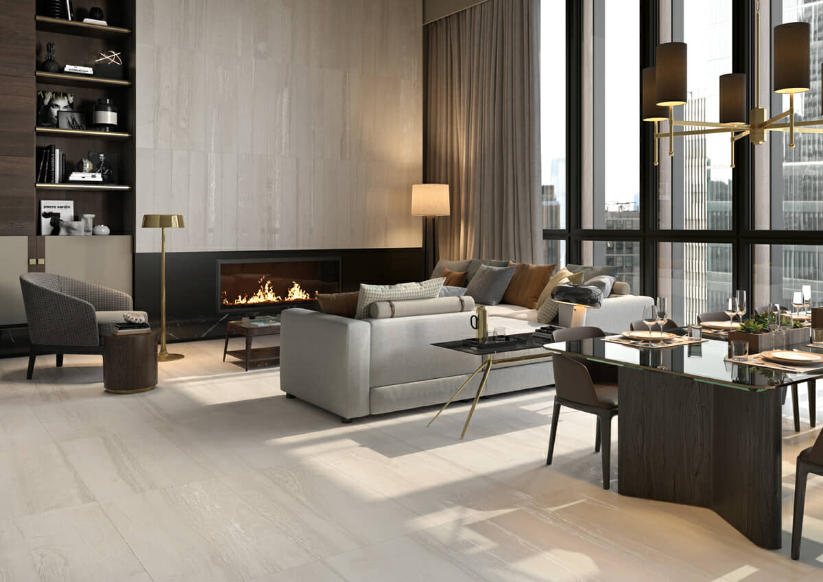 Uno stile unico, dall’eleganza indiscussa, declinato in cinque colorazioni in scala cromatica e in due finiture superficiali, naturale e lappato, che permettono a questo progetto di essere declinato in luoghi e contesti molto differenti, contaminando gli spazi di sfumature inaspettate ed uniche.