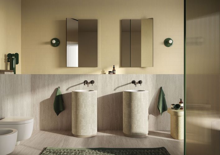 La collezione si ispira a una varietà sempre più rara ed elegante di una pietra limestone dal fascino millenario, un materiale iconico della progettazione architettonica.