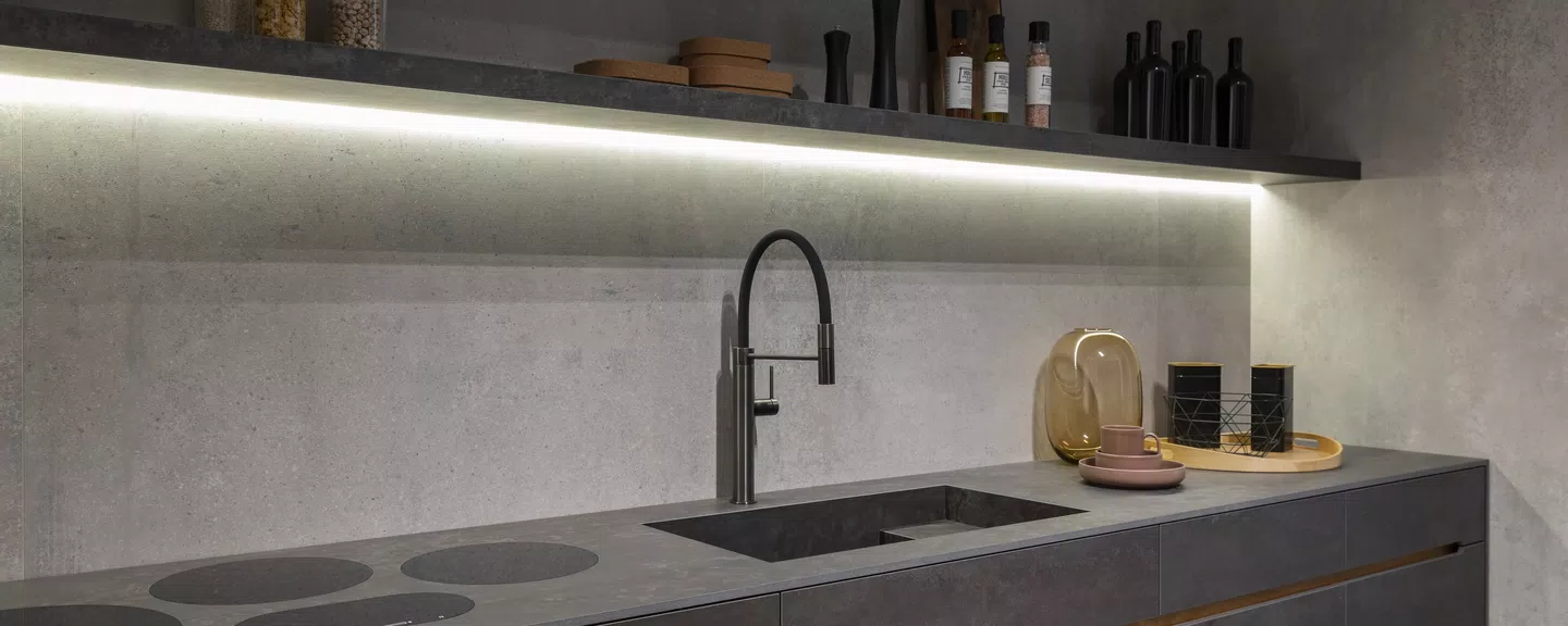 Un effetto metallo, declinato in due colorazioni, offre una nota di creatività alla cucina per coloro che cercano unicità nelle scelte d’arredo. Lastre di grandissime dimensioni permettono di apprezzare con continuità le superfici proposte, normalmente non usate come piani di lavoro a causa della scarsa funzionalità. Le lastre in grès porcellanato FLORIM stone non temono il tempo, le macchie, il caldo e i graffi. Si puliscono facilmente, non rilasciano sostanze tossiche a contatto con i cibi e sono di facile manutenzione.