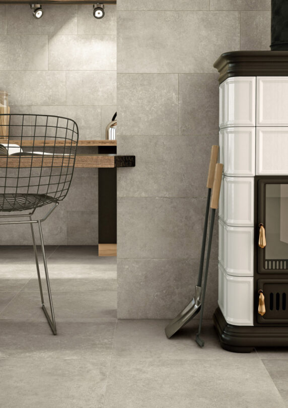 Step In è grés porcellanato dove il mondo delle pietre di recupero e quello dei cementi vissuti convergono in un perfetto equilibrio dal sapore contemporaneo.