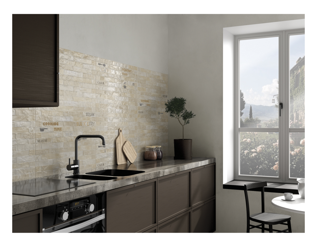 Collezione Luxor di Ceramica Euro. Rivestimento in gres porcellanato dai toni caldi e raffinati, disponibile nei colori Beige e Grigio con decori coordinati. Ideale per bagni e ambienti eleganti.