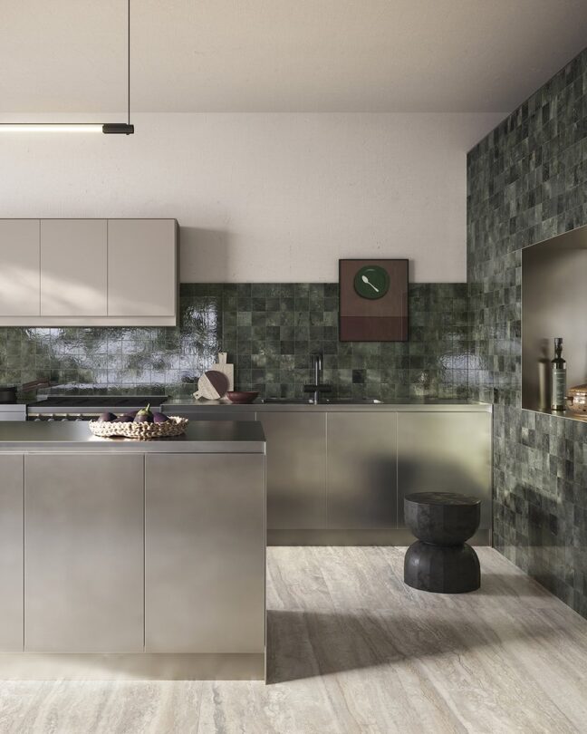 Il piccolo formato 10×10 di Pixel, la finitura lucida e la sua color palette rappresentano il cuore pulsante della sua versatilità, rendendo possibili composizioni dinamiche e accostamenti con altri materiali e collezioni.